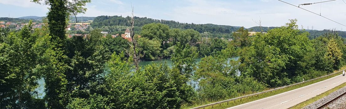 Nach der Spitzkehre in Stein, wollte ich mehr oder weniger dem Rhein entlang wieder zurückfahren. Es sind dies bis zur Mündung der Aare in den Rhein knapp 30 Kilometer. Teils auf Radwegen, teils auf der Hauptstrasse. In der Regel ziemlich flach. Das einzige was einem an einem schönen Tempo hindern könnte ist die Bise. Und die blies heute zeitweise recht zügig.