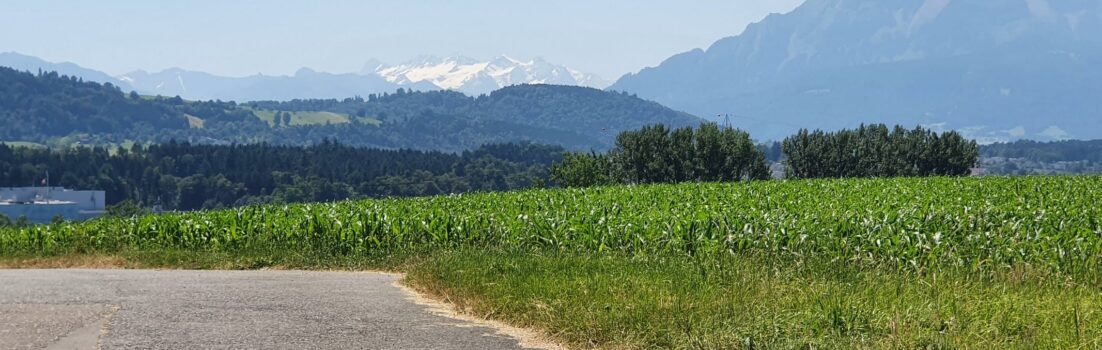 Kurzer Mittagslunch in Hochdorf an der Tankstelle. Nebst einem Sandwich kaufe ich heute auch noch genügend Wasser ein. Denn das Wasser im Bidon ist vor lauter Wärme schon fast ungeniessbar geworden.