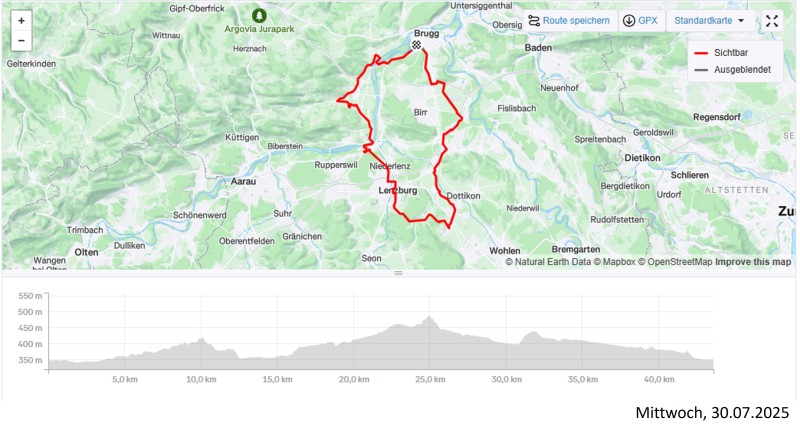 Nach ein paar Tagen auf dem Smarttrainer wollte ich heute wieder einmal raus. Über den Bözberg zogen zwar immer wieder dunkle Wolken, aber noch keine liess den Regen fallen. Ich rollte das Aaretal hinauf, während dem es auch diesmal nördlich des Bözbergs wieder recht dunkel wurde. Ich bekam sogar ein paar feine Regentropfen ab.