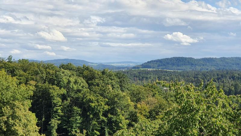 Wenn die Sicht und das Wetter noch ein bisschen besser wären, könnte man von hier aus problemlos bis in die Alpen hinüber sehen. Doch heute verliert sich der Blick in die Ferne bereits etwa auf der Höhe der Rigi.