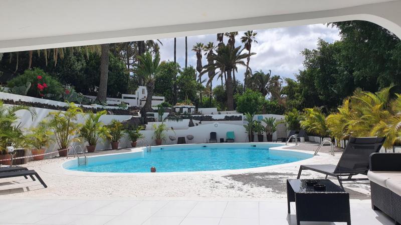 Unser Hotel jedenfalls befindet sich an einem Abhang, inmitten von Palmen und anderen Bäumen.