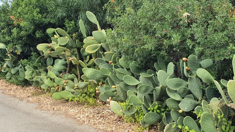 Auch auffällig sind die teils riesengrossen Kakteen entlang der Strasse. Manche tragen viele Früchte.