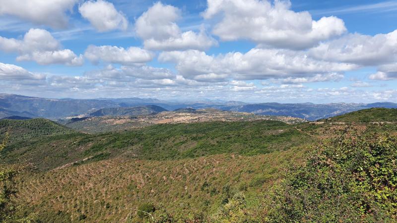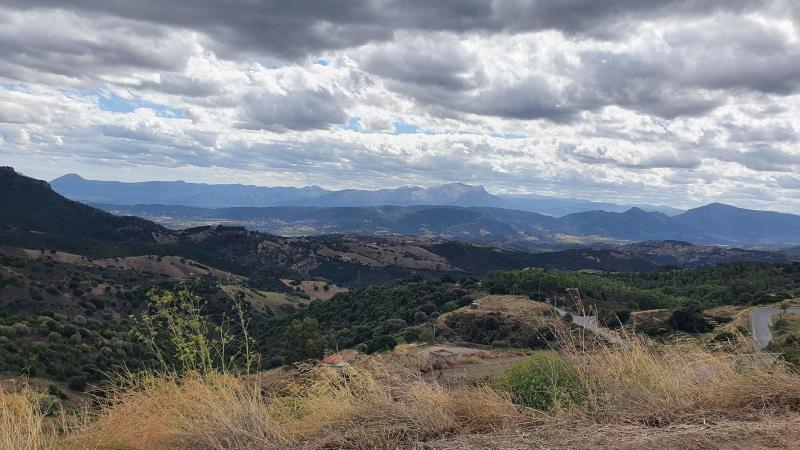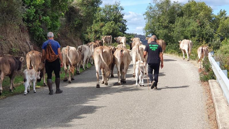 Bevor die Abfahrt anfängt, geht es eher flach, nur leicht abfallend dem Monte Albo entlang. Viele Kurven, recht gute Strassen. Die Aussicht nach Norden ist trotz des Waldes fast immer möglich. So verlieren wir während vielleicht 10 Kilometern etwa 300 Höhenmeter, bis wir in Lulu zum Mittagslunch ankommen. Ein kleiner Alpabzug bremst uns nur kurz aus.