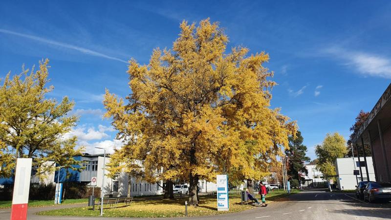 Ich rollte aus der Stadt hinaus, durch die Quartierstrassen nach Windisch. Trotz des Regens und des Windes standen da noch Bäume in herbstlich farbener Pracht herum.