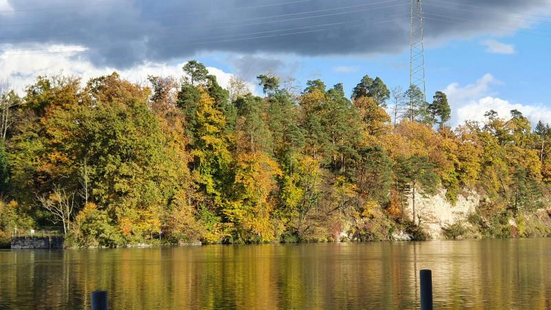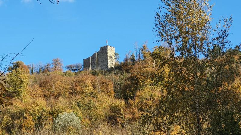 Später, nach dem ich die Auenwälder zwischen Villnachern und Brugg passiert hatte, zeigte sich die Habsburg, ebenfalls thronend auf einem farbigen Wald von der schönsten Seite.