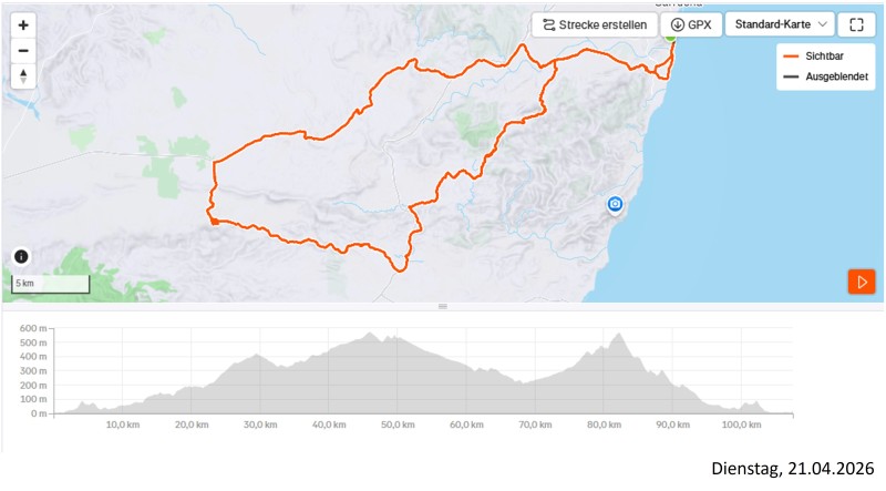 Die allermeisten Höhenmeter sind nun erkurbelt. Zügig geht es wieder zurück ins Hotel zum wohlverdienten Schlusstrunk.
