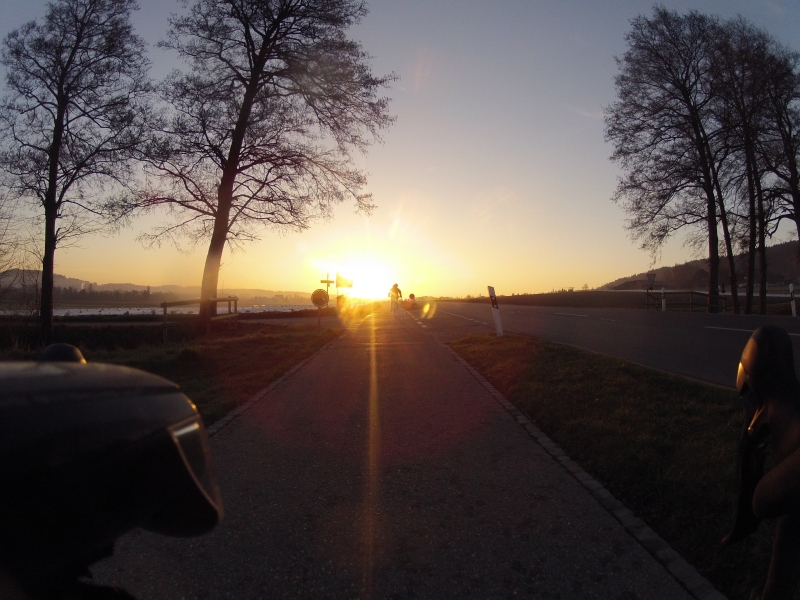 Es trifft sich so, dass meine Kamera am Lenker jeweils im Oktober während der Fahrten auf dem Arbeitsweg schöne Fotos von Sonnenauf- und Untergängen machen kann. Diesmal schien mir das Glück besonders freundlich gestimmt zu sein.