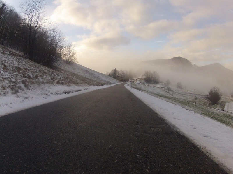 Es war ein eiskalter Monat. Der Nebel erhielt zwar manchmal ein paar Löcher, dies aber nur dank der Bise, die ihn wegfegte. Dafür war es dann meist bitterkalt. Oft suchte ich bewusst, die Runden so zu legen, dass ich wenigstens teilweise vom Windschatten unserer Hügel profitieren konnte, oder wenigstens von der Bise etwas geschoben wurde.