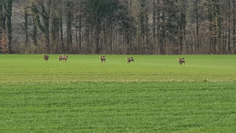 Nach dem eher stürmischen und unbeständigen Februar wurde es rasch schöner. Wolkenloser Himmel, aber oft verhinderte die Bise wärmere Tage. Um die Mitte des Monats gibt es auch dieses Jahr wieder eine grössere Ladung Saharastaub in die Luft, was zu ganz eigenartigen Stimmungsbildern führte. Der Monat dürfte zu trocken gewesen sein, denn die Äcker und Wiesen mussten bereits bewässert werden. Es gelangen mir einige besonders schöne Fahrten mit eindrücklichen Erlebnissen. Zum Beispiel kreuzte oberhalb Auenstein ein ganzes Rudel Gemsen meinen Weg.
