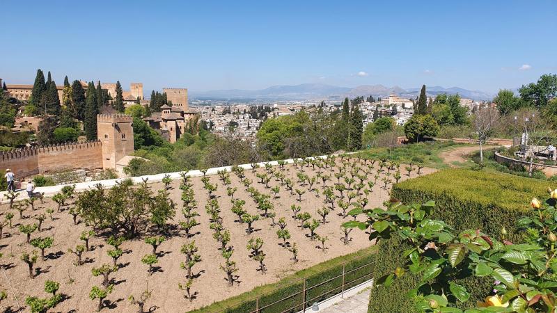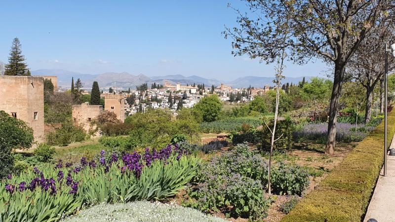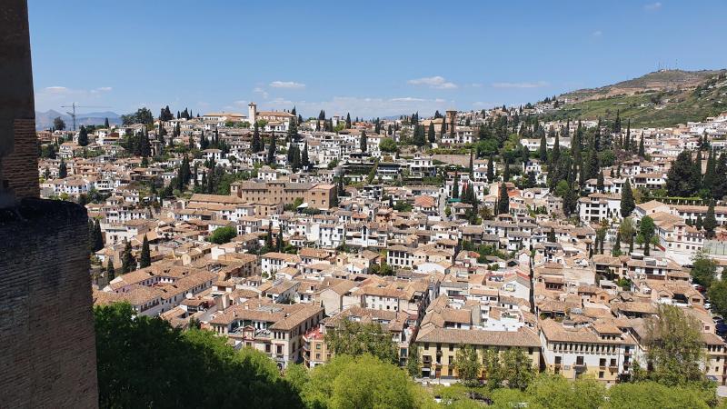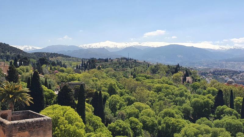 Hoch über Granada, bekommt man aber auch immer wieder schöne Ausblicke auf die darunterliegende Stadt und hinüber auf die nahe Sierra Nevada.