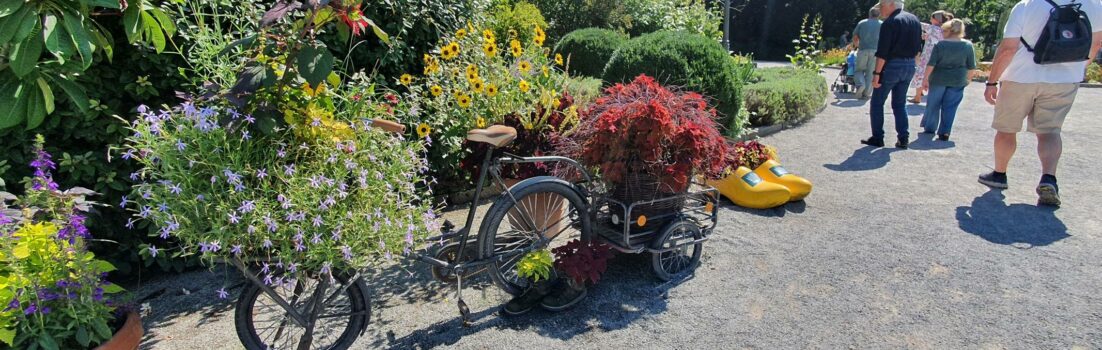 Die Insel selber war wieder mit vielen Blumen geschmückt. Die Dahlien waren gerade fertig angepflanzt. Die Bauarbeiten am Schloss sind abgeschlossen. Auf einen Besuch des Schmetterlingshauses haben wir diesmal verzichtet. Dafür gab es im Schlosscafé einen feinen Zwetschgenstreuselkuchen mit Kaffee.