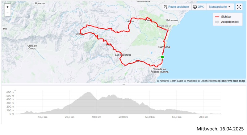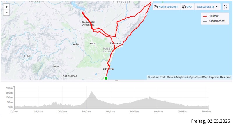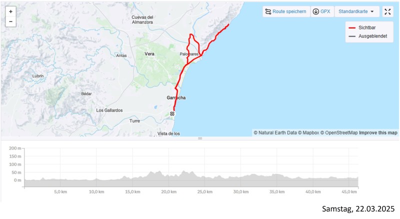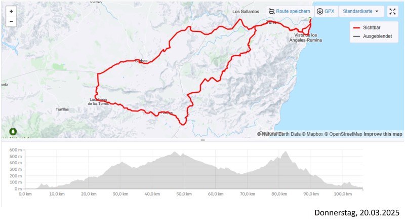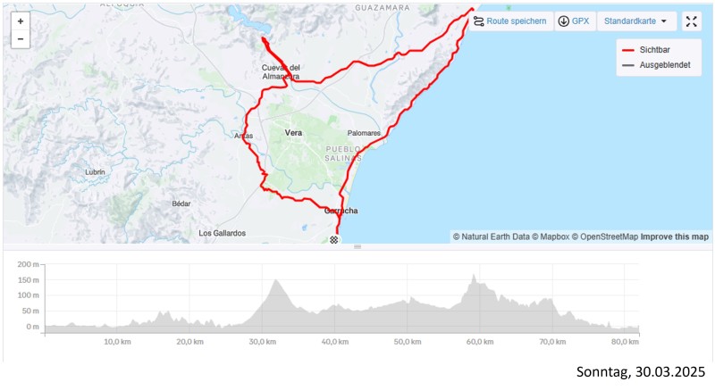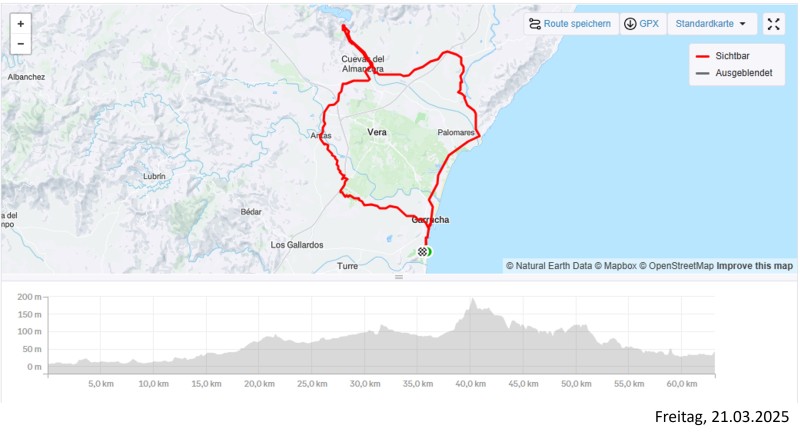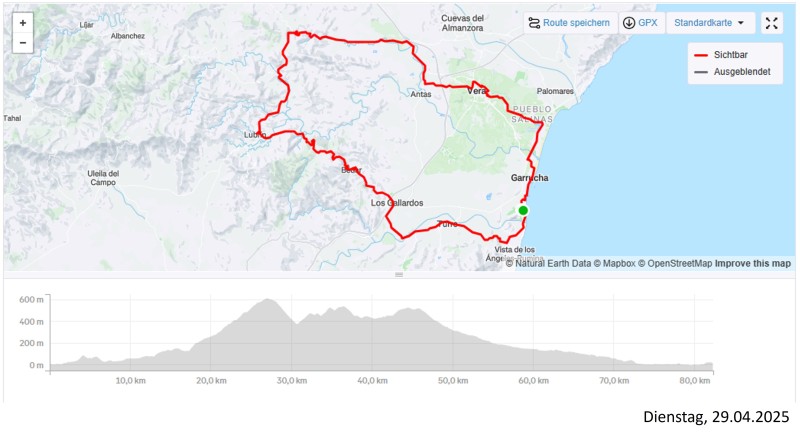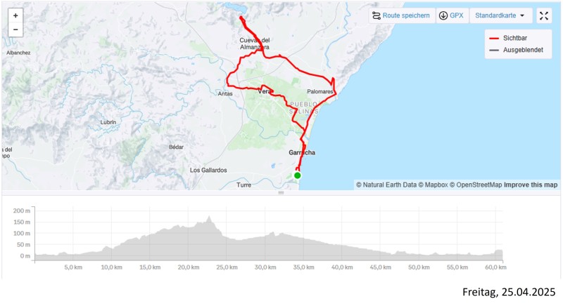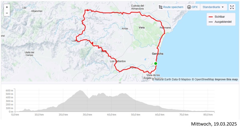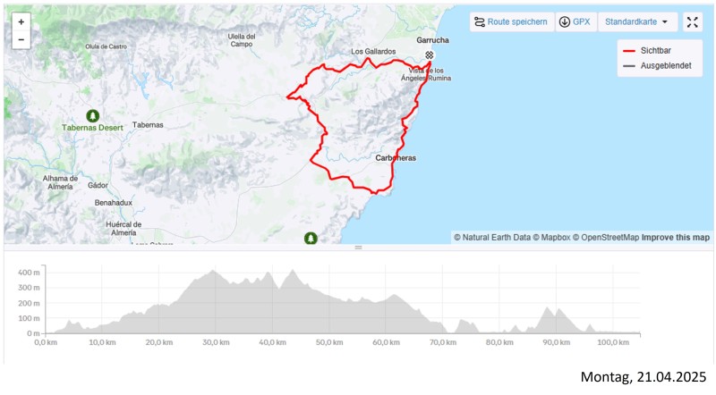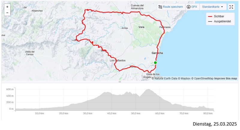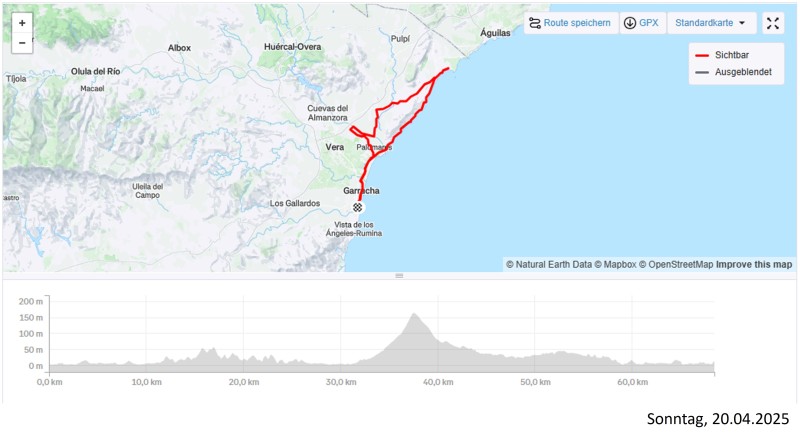 Auch dieses Jahr darf ich wieder als Guide Gäste von Eitzinger Sports auf dem Rennrad durch einen kleinen Teil der Region Almeria (Andalusien, Spanien) führen. Die dabei entstehenden Bilder stelle ich in einem separaten Fotoalbum zusammen. Zusätzlich wird das Titelbild des Postings in einer separaten Karte dargestellt.