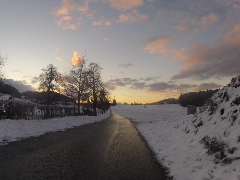Abendstimmung über dem Bünztal, kurz vor WohlenWoche vom 11.12.2017 bis 17.12.2017; Nur gerade zwei Runden konnte ich bei einigermassen trockenen Verhältnissen fahren. Es war eine regenreiche Woche. Die Schneefallgrenze liegt derzeit nur wenige Meter über unserem Flachland. Zum Album