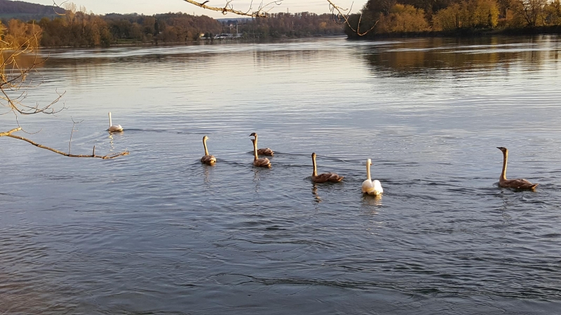 Schwanenfamilie am Rhein