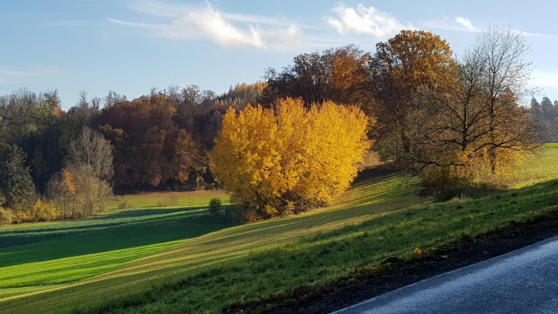 Nach einer eher kalten und trüben Woche, wurde es gegen das Wochenende nochmals recht schön und vor allem farbig. Während eines Spazierganges rund um Brugg gelang es mir, ein paar schöne, herbstlich farbene Fotos zu schiessen. Auch die Radfahrt vom Sonntag artete beinahe zu einer Fototour aus.