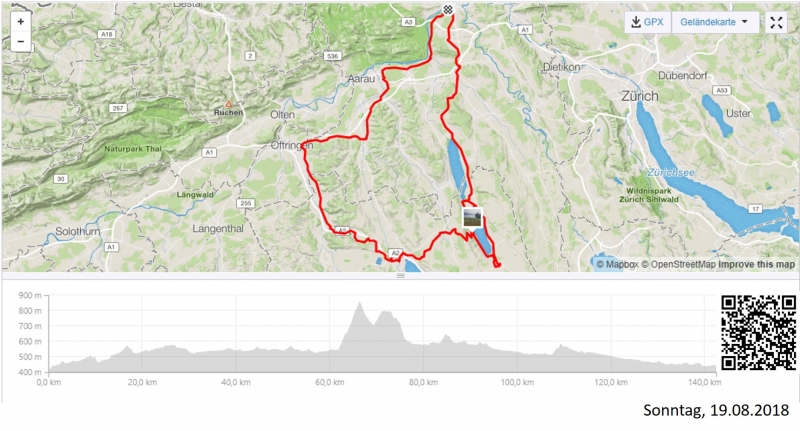 Diese Woche setzte sich zusammen aus zwei kürzeren und zwei längeren Rundfahrten. Mitte der Woche die Runde zum Rheinfall. Den Hinweg vorwiegend über die deutsche Seite des Rheines und die Rückfahrt fast ausschliesslich auf der Radroute 2 (Rhein-Route) gefahren. Am Sonntag, anschliessend an den Slow Up Seetal, eine längere Heimfahrt in einem grossen Bogen bis hinüber ins Wiggertal.