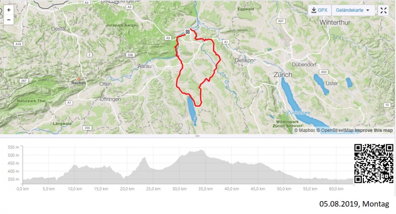 Ausser der Fahrt am Sonntag, die Teilnahme am Brugger SlowUp, kam bei allen anderen Fahrten die “Lust am Fahren” erst unterwegs. Da mal eine zusätzliche Kurve oder dort mal ein zusätzlicher Hügel. Alle Fahrten in der näheren Umgebung.