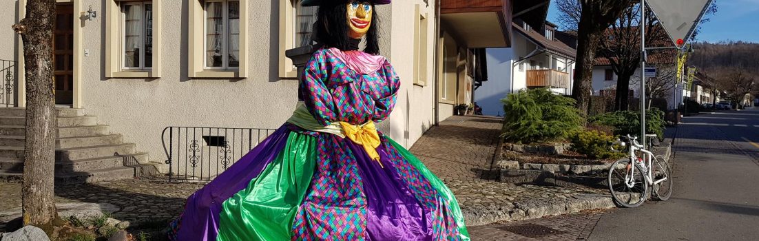 Eine Woche bei meist recht schönem und sonnigem Wetter. Frühlingsgefühle könnten aufkommen. Die fast zahllosen Plakate zur Ankündigung der Fasnachtszeit entlang der Strasse, werden jetzt ergänzt mit weiteren Sujets, wie zum Beispiel Puppen. Ich fuhr meine Runden in der näheren Umgebung, versuchte ein bisschen Abwechslung zwischen flachen und hügeligen Strecken zu finden.