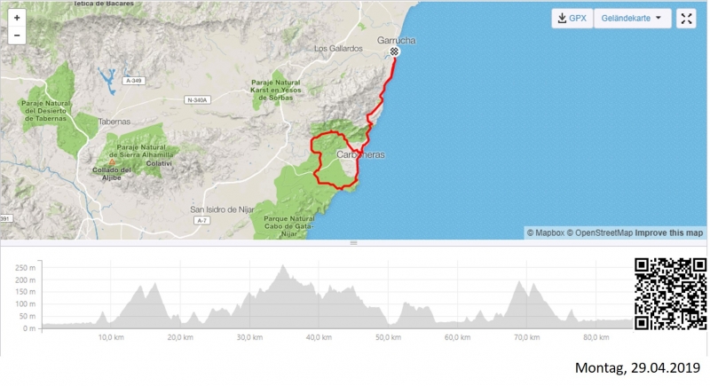Schon sind die vier Wochen in Mojacar vorbei. Das Wetter zeigt sich nochmals von der schönsten Seite. Am Samstag beginne ich bereits mit meinem Heimweg um halb Spanien herum. Im ersten Teil versuche ich, etwas mehr von Andalusien zu sehen, als nur gerade das Gebiet der Tagesausflüge um Mojacar herum.