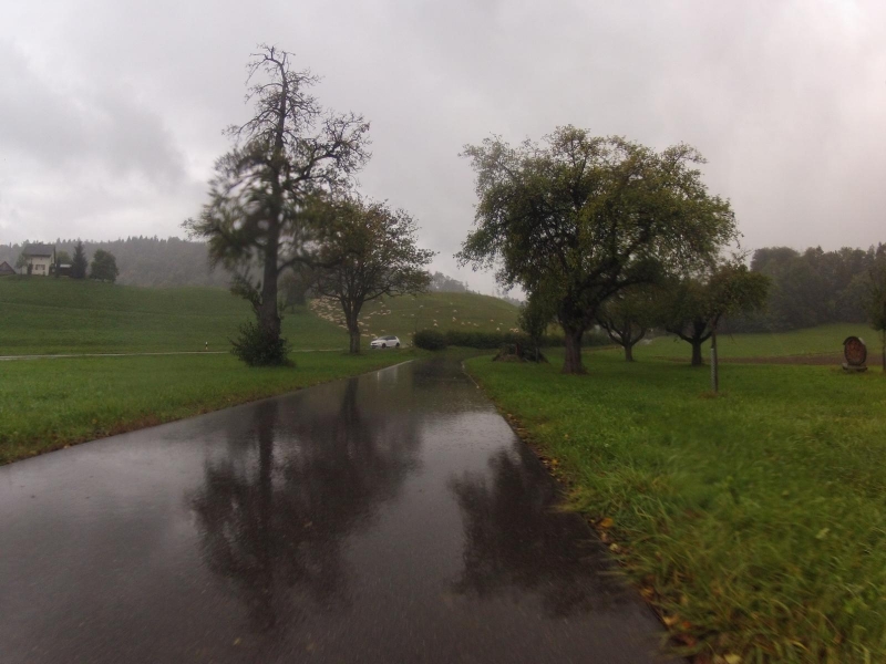 Diese Woche nur gerade zwei Runden gefahren. Die erste, die längere, konnte ich dank gewonnenem Rennen gegen den Regen, trocken abschliessen. Die zweite, die kürzere, da hat es mich dann doch voll erwischt. Jedenfalls mag ich mich nicht daran erinnern seit meiner Rückkehr von Spanien jemals eine ganze Runde im strömenden Regen gefahren zu haben. Man kann nicht immer Glück haben.