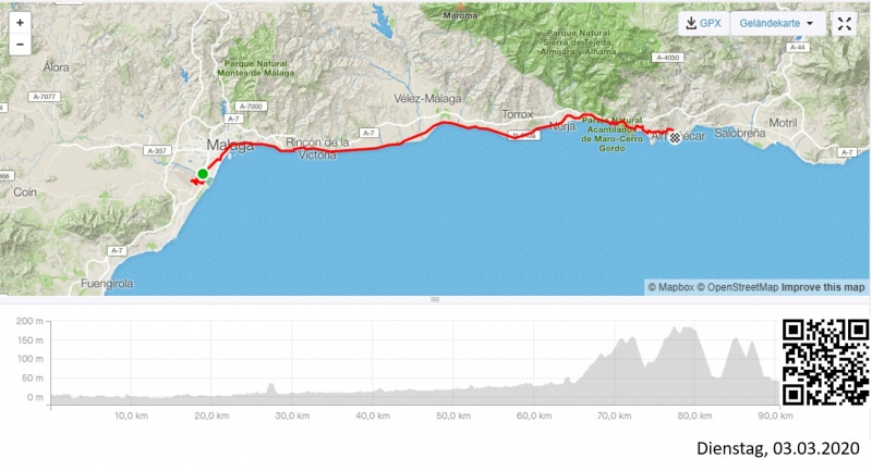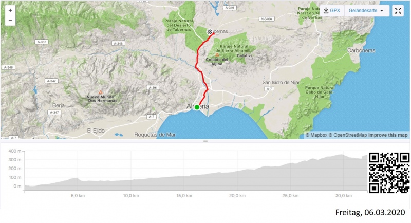 Die erste Woche in Andalusien. Nach dem Flug vom Montag nach Malaga, ging es mit dem Rad weiter ostwärts, der andalusischen Küste entlang. Oft hatte ich Glück und konnte von einem guten Rückenwind profitieren. Ich leistete mir einen freien Nachmittag in Almeria, wo ich die Kathedrale und die Alcazaba, eine Art Stadtburg aus der Zeit des Islam und der Mauren, ausgiebig besichtigte. Anschliessend verweilte ich einen weiteren halben Tag im Kulissendorf “Fort Bravo”, in der Nähe von Tabernas, bevor ich zu unserer Raddestination in Mojacar hinunter fuhr. Am Sonntag dann bereits die erste Runde von Mojacar, mit unseren Gästen.