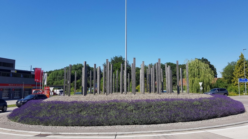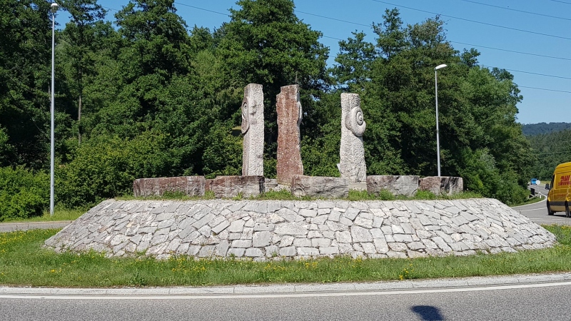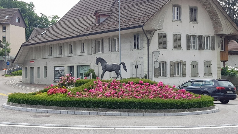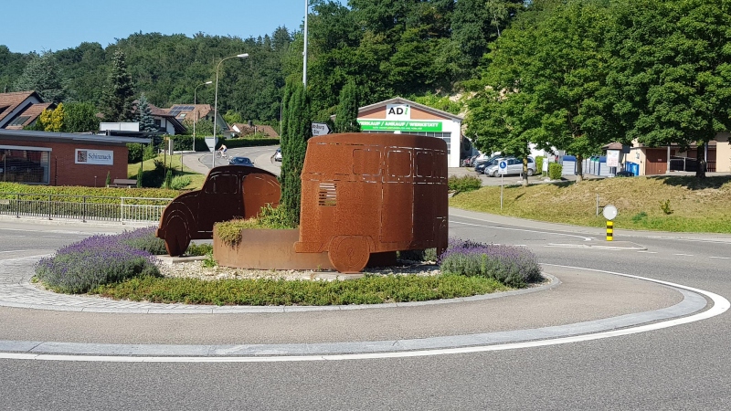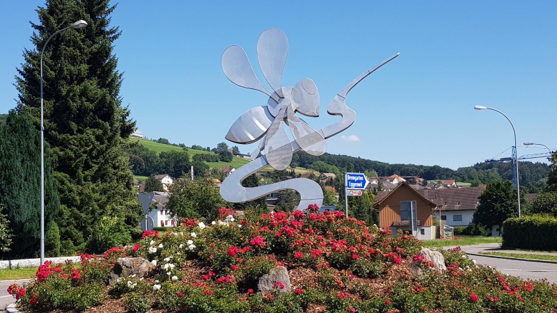 Die Strassenkreisel und vor allem ihre Dekorationen, Kunstwerke oder manchmal auch einfach Reklame, sind teils schöne Blickfänge. Ich habe deshalb diese Woche angefangen, vermehrt Fotografien davon zu machen. Die längste Fahrt führte mich bis in die Grenzregion der Kantone Luzern und Bern.