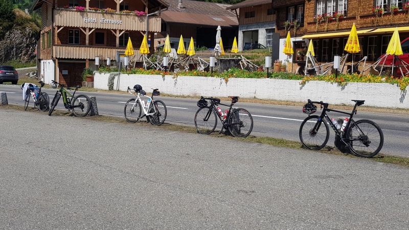Bei meist sehr heissem aber auch sehr schönem Wetter, kurbelten wir über die Strecke der Schweizer 10-Pässefahrt weiter. Allfällige Gewitter oder Regengüsse fielen in der Nacht und gaben uns für die ersten Stunden des nächsten Morgens etwas Kühlung. Insgesamt fuhren wir knapp 700 KM und gut 12’000 Höhenmeter während der siebentägigen Fahrt. Die Fahrt endete in der Badi Spiez.