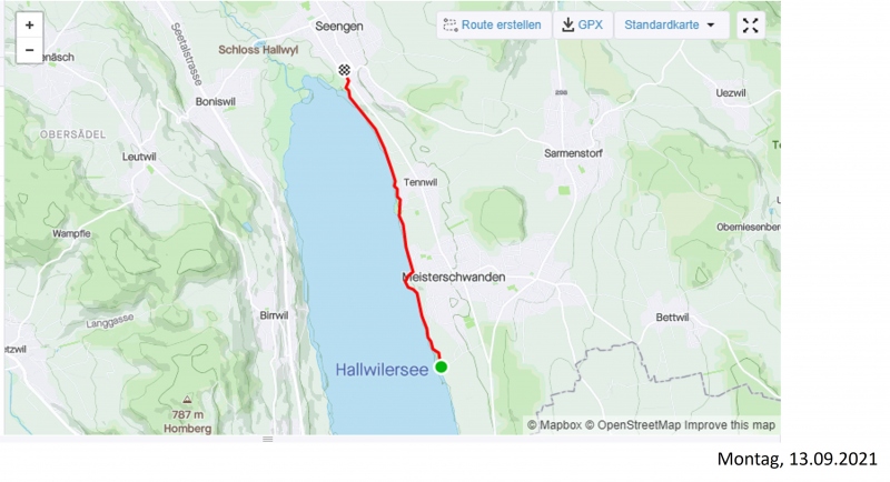 Die Woche begann mit einer Wanderung am Hallwilersee. Es folgten anschliessend ein paar Fahrten in der näheren Umgebung, teils mit sehr hohem Anteil an Gravelstrecken. Um die Mitte der Woche nochmals ein Spaziergang durch die Quartiere, nur um ein paar Punkte in Zusammenhang mit dem Outdoorspiel Munzee zu erlangen. Am Samstag ein weiterer Granfondo, fast ausschliesslich gefahren im Aaretal, bevor der Regen am Sonntag einen Ruhetag erzwang.