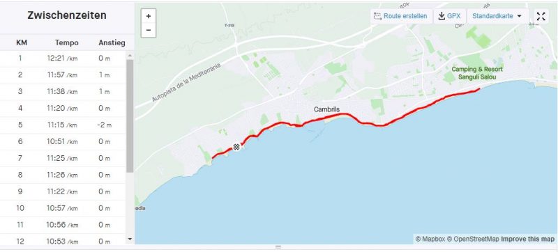 Letzte Bilder aus meinem Aufenthalt in Cambrils (Spanien, Katalonien), ein abschliessender Lauf dem Meer entlang vor der nächtlichen Busfahrt nach Hause. Am Sonntag dann bereits die erste Fahrt bei wieder wesentlich kühleren Temperaturen und herbstlichen Farben in der Schweiz.