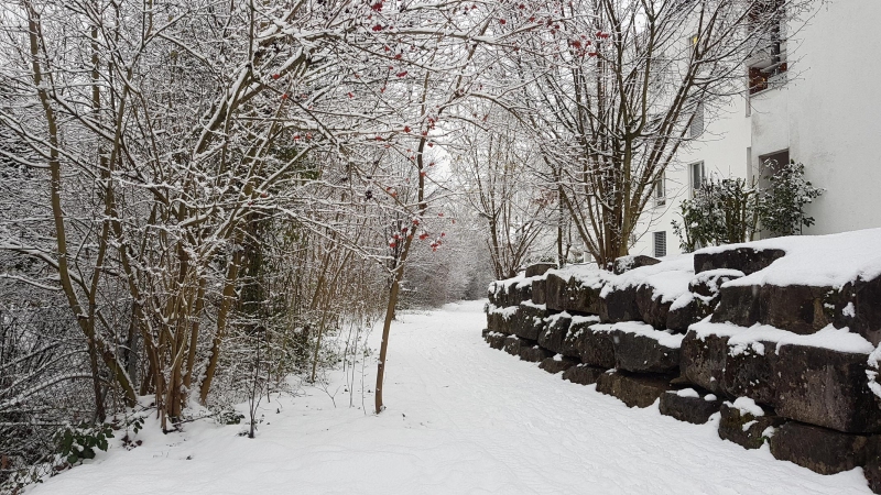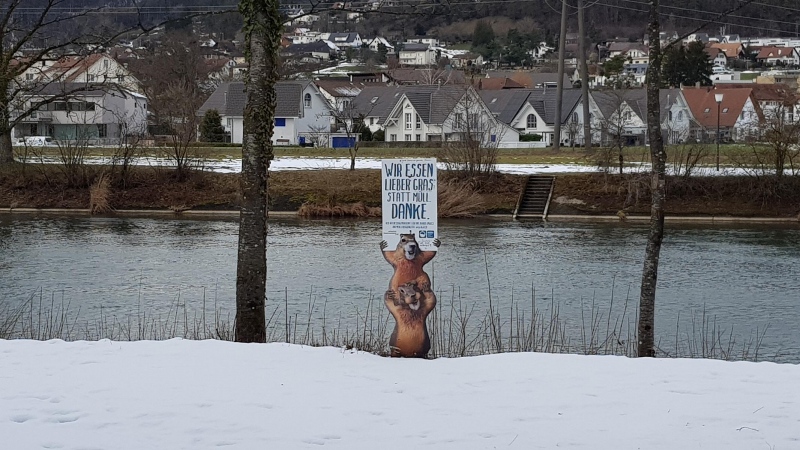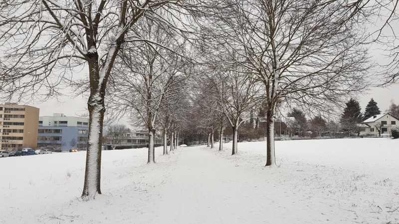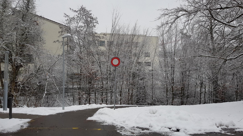 Nach einem (vorerst?) letzten weissen Niederschlag putzte der Regen innert kürzester Zeit sämtlichen Schnee weg. Bäche und Flüsse sind randvoll, die Strassen klatschnass. Eine Fahrt über Schnee am Anfang der Woche, dann mit dem Rad und zu Fuss durch den Regen, jedenfalls meistens.