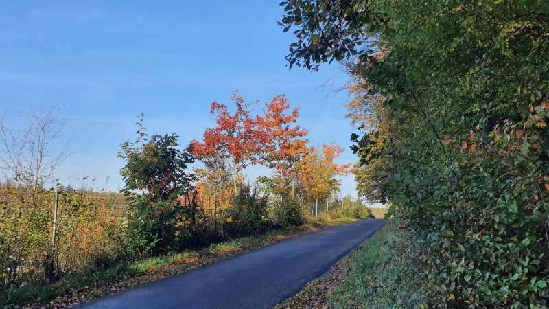 Typische Herbsttage: am Morgen liegt der Nebel in den Tälern herum, löst sich dann langsam auf. In der Regel schafft die Sonne um die Mittagszeit den Durchbruch. Es wird für die nächsten paar Stunden angenehm warm, bevor es gegen Ende des Tages wieder überraschend rasch kühl wird. Allgemein soll es aber immer noch im Vergleich mit anderen Jahren deutlich zu warm sein. Einige Radfahrer fahren wohl auch deshalb immer noch in kurz/kurz durch die Gegend.