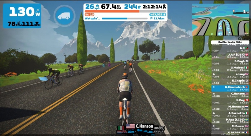 - Radfahren in der virtuellen Welt an fünf Tagen, 444 KM, längste Fahrt 106 KM.