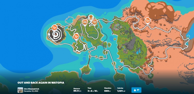 - Insgesamt 2’959 Höhenmeter (gibt es auch in der virtuellen Welt).