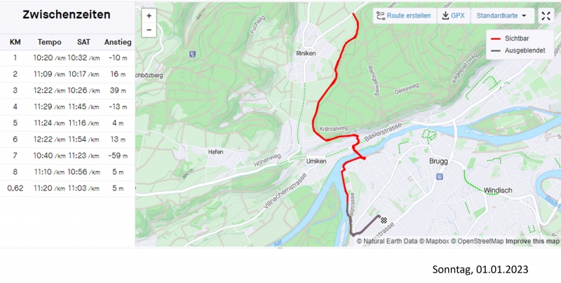 Das neue Jahr begrüsste ich mit einem Lauf in unserer Umgebung, ebenfalls und weiterhin mit sehr schönem, warmem und sonnigem Wetter.