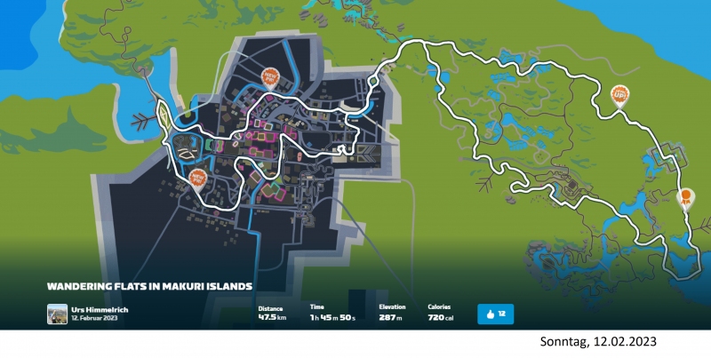 | Radfahren in virtueller Umgebung | 4 | 225 | 2’519 | 65 KM |