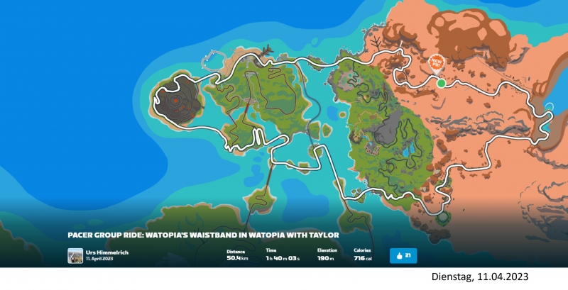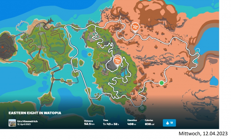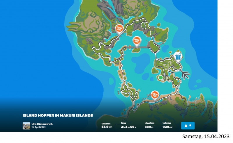 An den übrigen Tagen radelte ich weiter durch die virtuellen Welten von Watopia und Makuri Island.