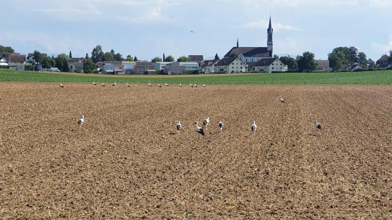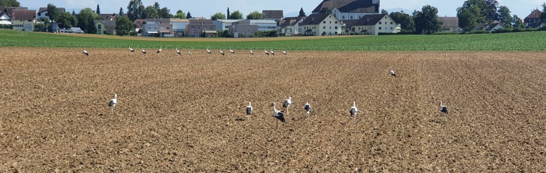Das Highlight der Woche dürften die vielleicht 50 Störche auf einem Acker bei Bünzen gewesen sein. Sie liessen sich gut fotografieren. Ich bekam den Eindruck, dass sie wohl auf das “Startzeichen” ihres Fluges nach Süden warteten.