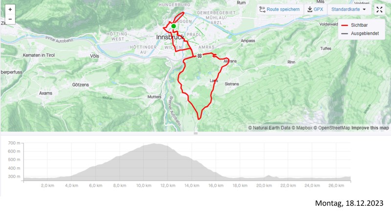 Diese Woche habe ich es etwas gemütlicher genommen. Zwar etwas kürzere Fahrten, dafür mit ein paar zusätzlichen Höhenmetern. Die Absicht war, vor dem Beginn von Festive500 das Höhenmeterziel von 7’500 Höhenmeter erfüllt zu haben.