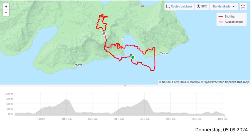 Nochmals eine schöne, sommerlich warme Woche, bis auf den Mittwoch. Das war denn auch der einzige Tag mit einer Fahrt auf dem Smarttrainer. Die anderen Tage war ich draussen, bei meist angenehmen Temperaturen, manchmal etwas Biswind.