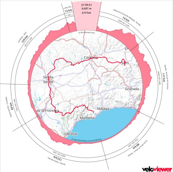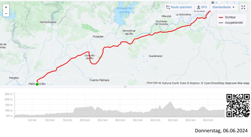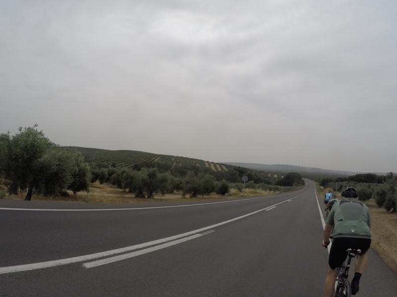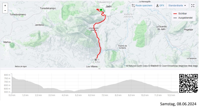 Leider endet für mich die Andalusienrundfahrt in La Llosa, unweit von Jaén, bereits. Während eines Gewitterregens bin ich auf dem Matsch von reifen Früchten schwer gestürzt und habe mir einige Prellungen und Quetschungen zugezogen, die sogar eine Untersuchung auf Brüche am Brustkorb notwendig machten. Glücklicherweise ist nichts gebrochen, doch an eine Weiterfahrt ist vorerst nicht mehr zu denken.