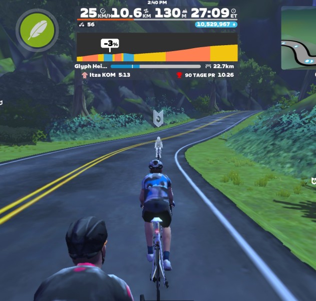 Die Woche hätte eine Aprilwoche sein können. Ein hin und her zwischen angenehm warmen und trockenen Tagen und Tagen mit Dauerregen. Nicht verwunderlich, dass ich so an der Hälfte der Tage meine Kilometer auf dem Smarttrainer in den virtuellen Gegenden von Watopia und Frankreich verbrachte.