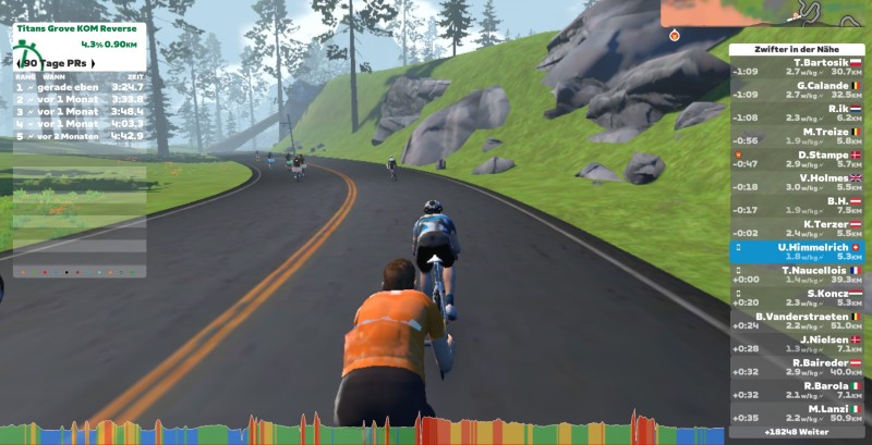 | Radfahren in virtueller Umgebung | 6 | 278 | 1’968 | 54 KM |