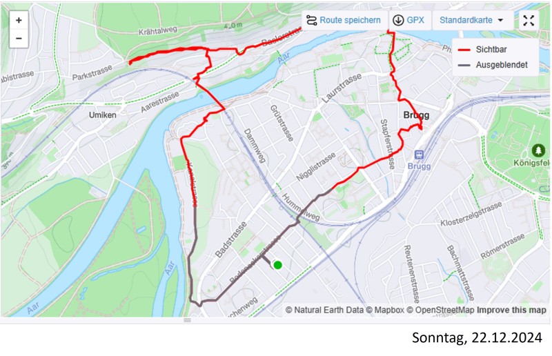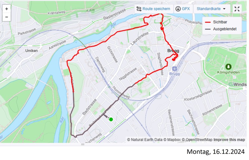Husten und Schnupfen hielten sich hartnäckig auch diese Woche nochmals. Langsam klingt die Geschichte zwar ab, ich hielt es aber dennoch für besser, mich vorerst mit ein paar Spaziergängen in der näheren Umgebung zufrieden zu geben. Ich möchte damit nicht zuletzt auch erreichen, dass ich auf den Start des alljährlich stattfindenden Festive500 wieder fit bin. Da gilt es dann, ab 24.12. bis zum Jahresende 500 KM auf dem Rad zu kurbeln. Zum letzten Mal im Jahr, die Beine nochmals richtig bewegen.
