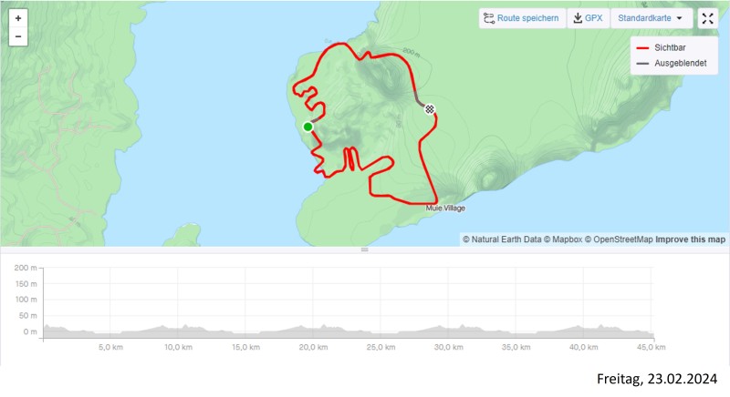 Montag und Dienstag fuhr ich draussen je eine Runde bei weiterhin recht schönem und auch (zu) warmem Wetter für diese Jahreszeit. In den nächsten paar Tagen wurde es kühler, auch war die Wetterentwicklung schwer abzuschätzen, weshalb ich meine fast täglichen Runden wieder auf den virtuellen Strassen von Watopia abspulte. Den Granfondo (100 KM am Stück) für den Februar fuhr ich ebenfalls im Keller auf der Rolle. Es war mir einfach noch zu kalt, mindestens vier Stunden draussen mit dem Rad unterwegs zu sein. Und ja, es ist einfacher und geht schneller, eine solche Runde Indoor zu fahren.