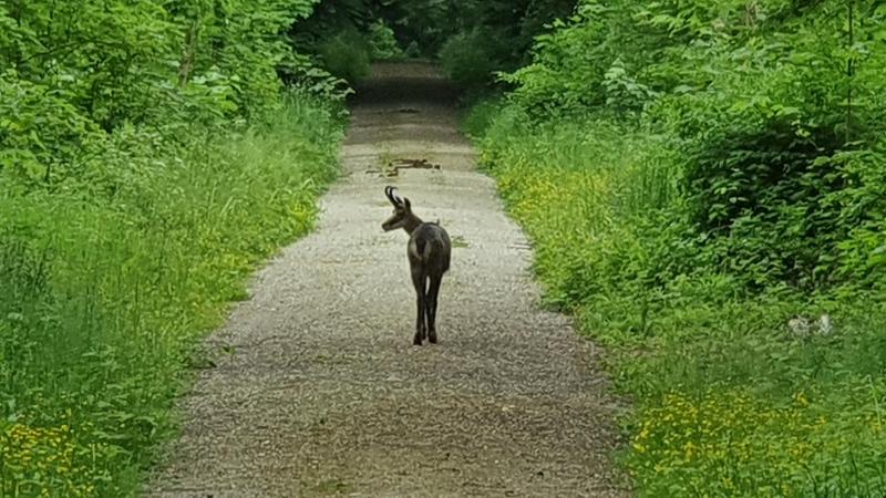 Gemse am BruggerbergWoche vom 19.05.-25.05.2025: Zur Abwechslung wieder einmal eine eher kühle und regnerische Woche. Ein überraschendes Erlebnis hatten wir während unseres Spazierganges am Bruggerberg: Eine Gemse stand mitten auf dem Fahrweg, sie muss uns gesehen haben, blieb aber dennoch seelenruhig stehen. Erst als ich genügend Fotos geschossen hatte, bewegte sie sich langsam durch das Gebüsch davon.