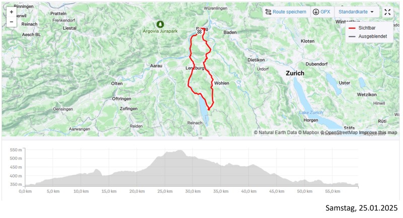 Einmal in unserer Gegend, um das Birrfeld herum und durch das Aaretal zurück. Das zweite Mal etwas weiter, bis ins Seetal.