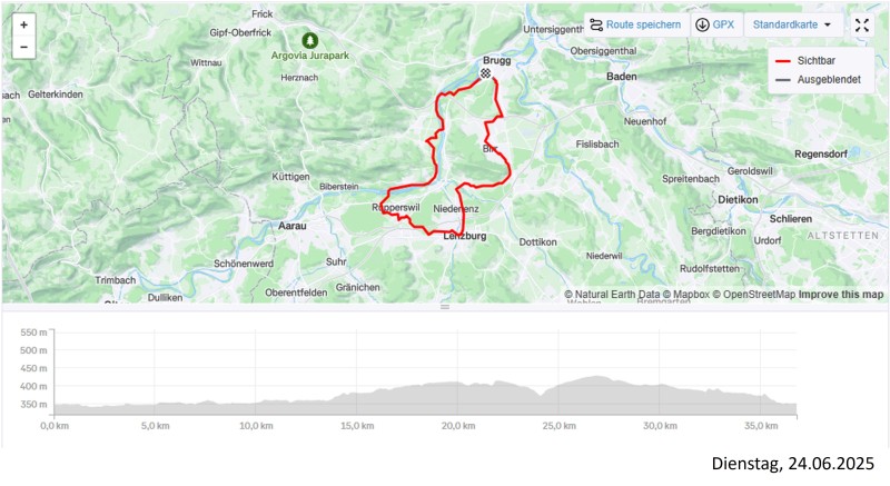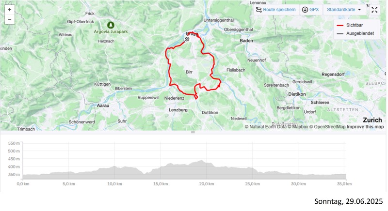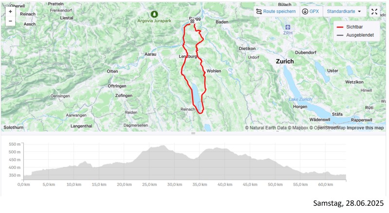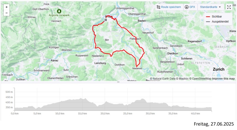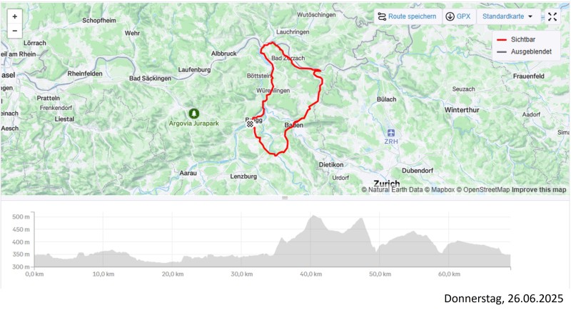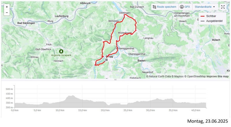 Eine durchgehend richtig heisse Woche. Dennoch war es notwendig, an einem Tag die Strecke mit Hilfe des Niederschlagsradars zu suchen, um trocken durchzukommen. Ich beschränkte mich auf eher kürzere Fahrten in der Umgebung und versuchte auch diese Fahrten entweder in den etwas kühleren Vormittag oder den späten Nachmittag zu legen. Ich versuchte auch meine Strecken entlang der grossen Gewässer oder durch Wälder zu legen.