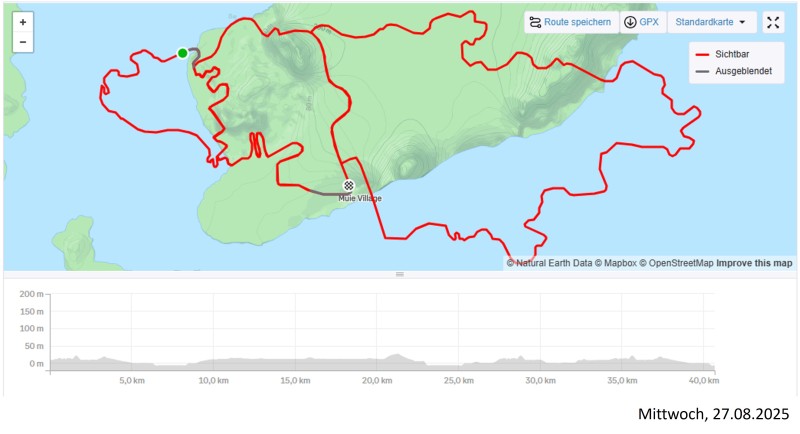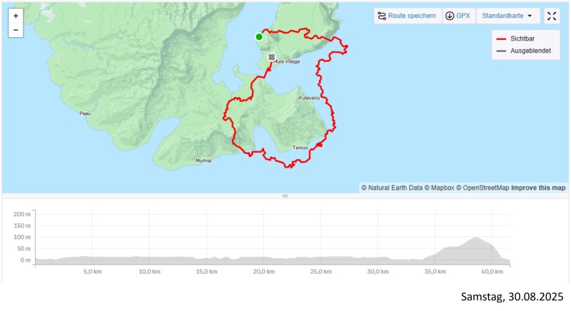 Der Sommer verabschiedet sich langsam. Das Wetter schwankt zwischen sehr warm, schwül warm, einzelnen Gewittern und andauerndem Landregen hin und her. Sogar schon einen Morgen mit herbstlichem Nebel haben wir erlebt. Ich wechsle ab zwischen Fahrten draussen und auf dem Smarttrainer. Am Sonntag gelingt mir nochmals eine etwas längere Fahrt bei schönstem, und warmem Sommerwetter. Es reichte sogar für einen leichten Sonnenbrand an den Oberschenkeln.