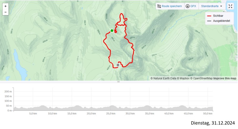 Dank der längeren Fahrten in der letzten Woche des alten Jahres, blieben nur noch etwa 120 KM für dieses noch junge Jahr. So konnte ich den Festive500, die 500 KM zwischen Weihnachten und Neujahr, erfolgreich beenden.