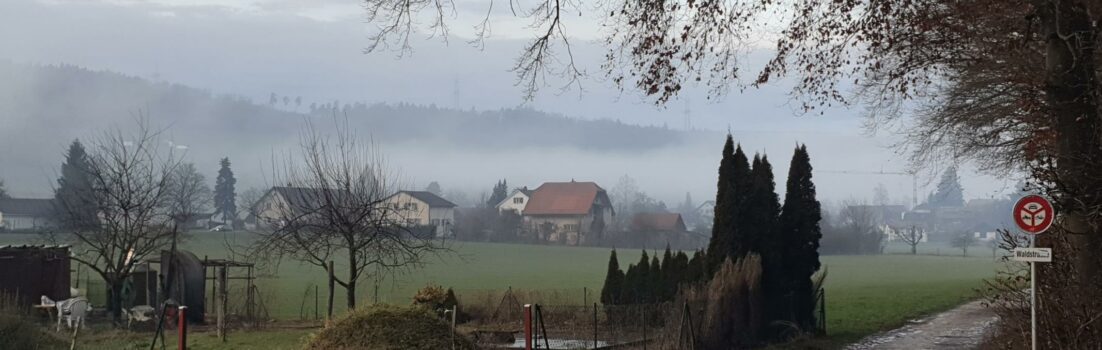 Ein weiterer Lauf am Sonntag rundete diese erste Woche ab. Nach einer eisig kalten Nacht, erlebten wir einen überraschend warmen Tag. Vielleicht deshalb bildete sich genau während der Zeit unseres Spazierganges am Bruggerberg eine Nebelschicht über dem Villigerfeld.